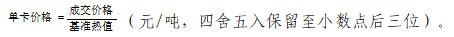 (2)如(基准值-100)≤Qnet,ar<基准值,以基准值为基础,每降低1千卡/千克,结算价格调减单卡价格的1.0倍。