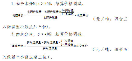 (4)如化验单批次Qnet,ar<(基准值-300),该批煤作废,按0元结算。