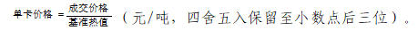 (2)如(基准值-100)≤Qnet,ar<基准值,以基准值为基础,每降低1千卡/千克,结算价格调减单卡价格的1.0倍。