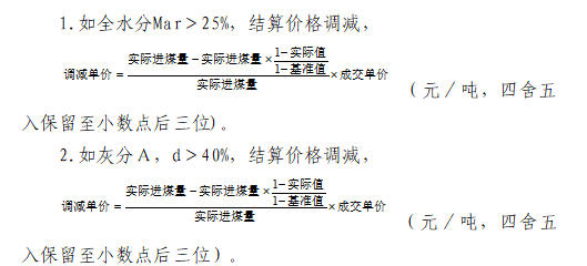 (4)如化验单批次Qnet,ar<(基准值-300),该批煤作废,按0元结算。