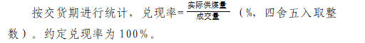 4.扣吨及罚没吨数不参与兑现率计算,质量指标也不参与月度或供货期加权平均计算.