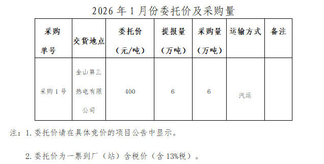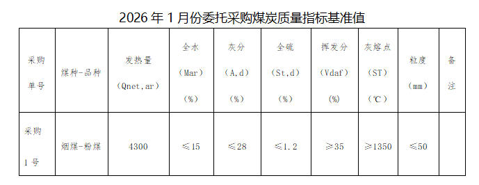 内蒙古能源集团有限公司计划对所属内蒙古能源集团金山第三热电有限公司2026年1月电煤采购进行电子专场交易,交易信息现对外公开发布,凡符合条件的交易商均可参加。