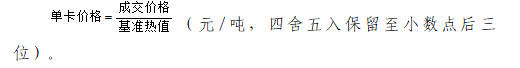 2.如(基准值-100)≤Qnet,ar<基准值,以基准值为基础,每降低1千卡/千克,结算价格调减单卡价格的1.0倍。