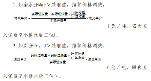 4.如Qnet,ar<(基准值-200),以基准值为基础,每降低1千卡/千克,结算价格调减单卡价格的3.0倍。