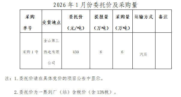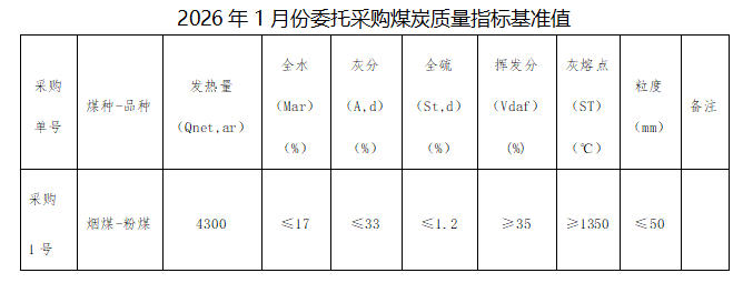 内蒙古能源集团有限公司计划对所属内蒙古能源集团金山第三热电有限公司2026年1月电煤采购进行电子专场交易,交易信息现对外公开发布,凡符合条件的交易商均可参加。