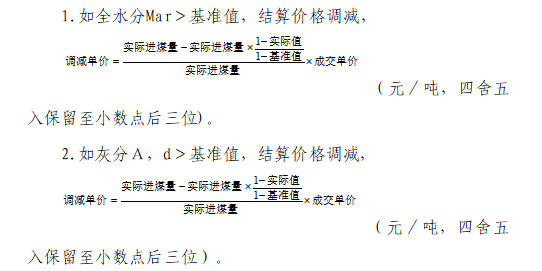 4.如Qnet,ar<(基准值-200),以基准值为基础,每降低1千卡/千克,结算价格调减单卡价格的3.0倍。