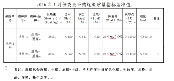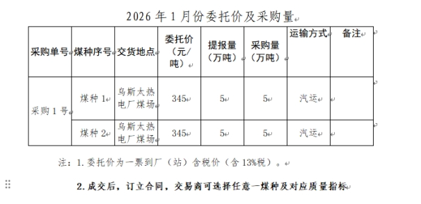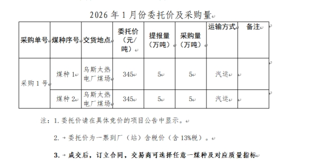 内蒙古能源集团有限公司计划对所属乌斯太热电厂2026年1月市场煤采购进行电子专场交易,交易信息现对外公开发布,凡符合条件的交易商均可参加。
