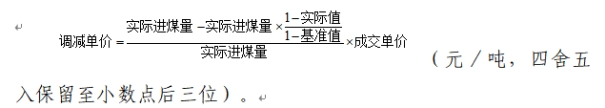 2.如(基准值-100)≤Qnet,ar<基准值,以基准值为基础,每降低1千卡/千克,结算价格调减单卡价格的1.0倍。