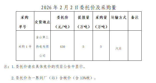 内蒙古能源集团有限公司计划对所属内蒙古能源集团金山第三热电有限公司2026年2月2日电煤采购进行电子专场交易,交易信息现对外公开发布,凡符合条件的交易商均可参加。