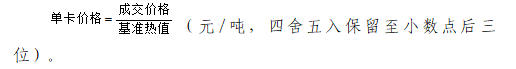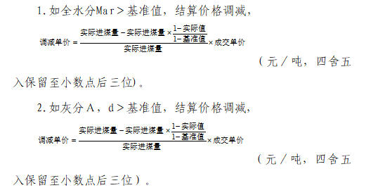 2.如(基准值-100)≤Qnet,ar<基准值,以基准值为基础,每降低1千卡/千克,结算价格调减单卡价格的1.0倍。