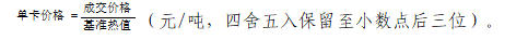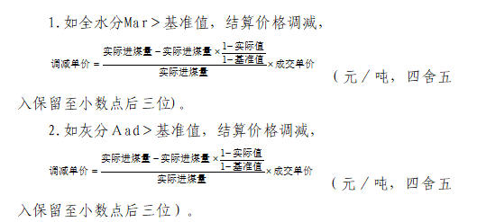 2.如(基准值-100)≤Qnet,ar<基准值,以基准值为基础,每降低1千卡/千克,结算价格调减单卡价格的1.0倍。
