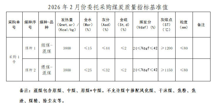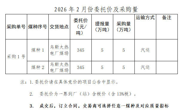 内蒙古能源集团有限公司计划对所属乌斯太热电厂2026年2月市场煤采购进行电子专场交易,交易信息现对外公开发布,凡符合条件的交易商均可参加。
