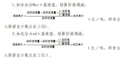 2.如(基准值-100)≤Qnet,ar<基准值,以基准值为基础,每降低1千卡/千克,结算价格调减单卡价格的1.0倍。