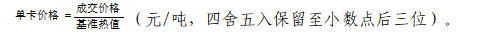 (2)如(基准值-100)≤Qnet,ar<基准值,以基准值为基础,每降低1千卡/千克,结算价格调减单卡价格的1.0倍。