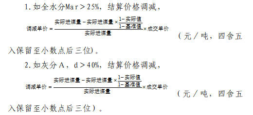 (4)如化验单批次Qnet,ar<(基准值-300),该批煤作废,按0元结算。
