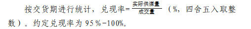 (一)供应商因自身原因导致兑现率低于95%,除按质量考核条款考核外,还将进行兑现率考核,考核金额=成交量×(95%-兑现率)×成交价×5%,从保证金中扣除。