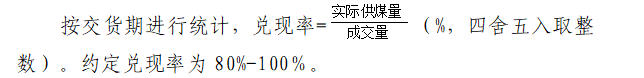 (一)销方因自身原因导致兑现率低于80%,除按质量考核条款考核外,还将进行兑现率考核,考核金额=成交量×(80%-兑现率)×成交价×5%,从保证金中扣除。